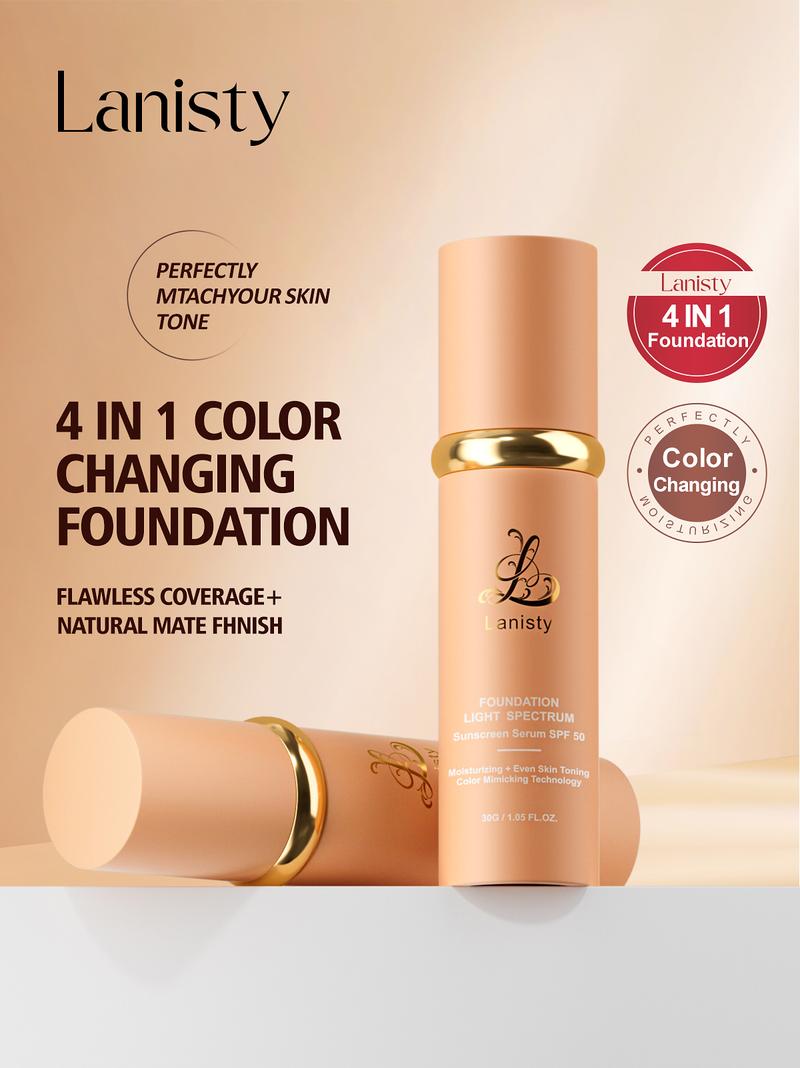 【3 Bottels】Lanisty Color Changing Foundation 4 in 1 Full Coverage , SPF50, Hydrating, Long-Lasting,Moisturizing , Natural Finish,Waterproof Makeup Concealer Concealer