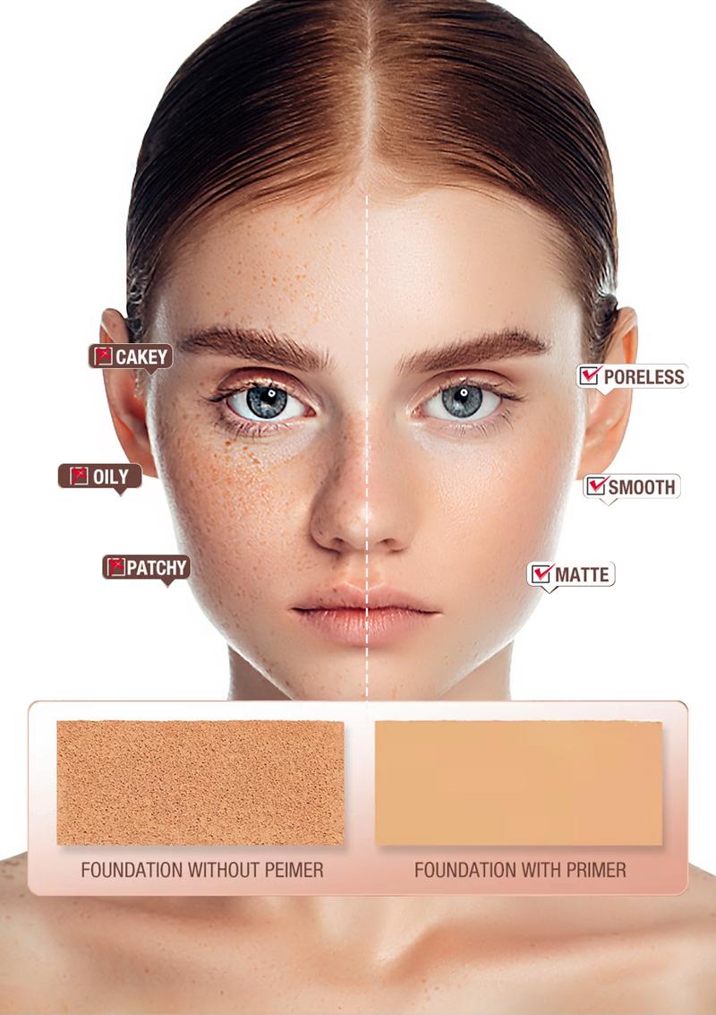 • Matte Finish: Achieve a shine-free look with our lightweight, matte foundation.