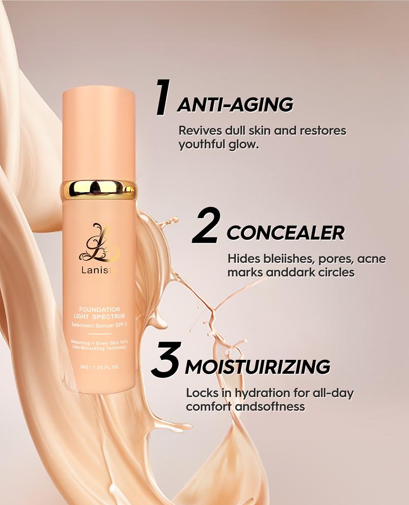 • Simplify Your Routine: Merge anti-aging, sunscreen, concealer, and moisturizer with our versatile 4-in-1 foundation.